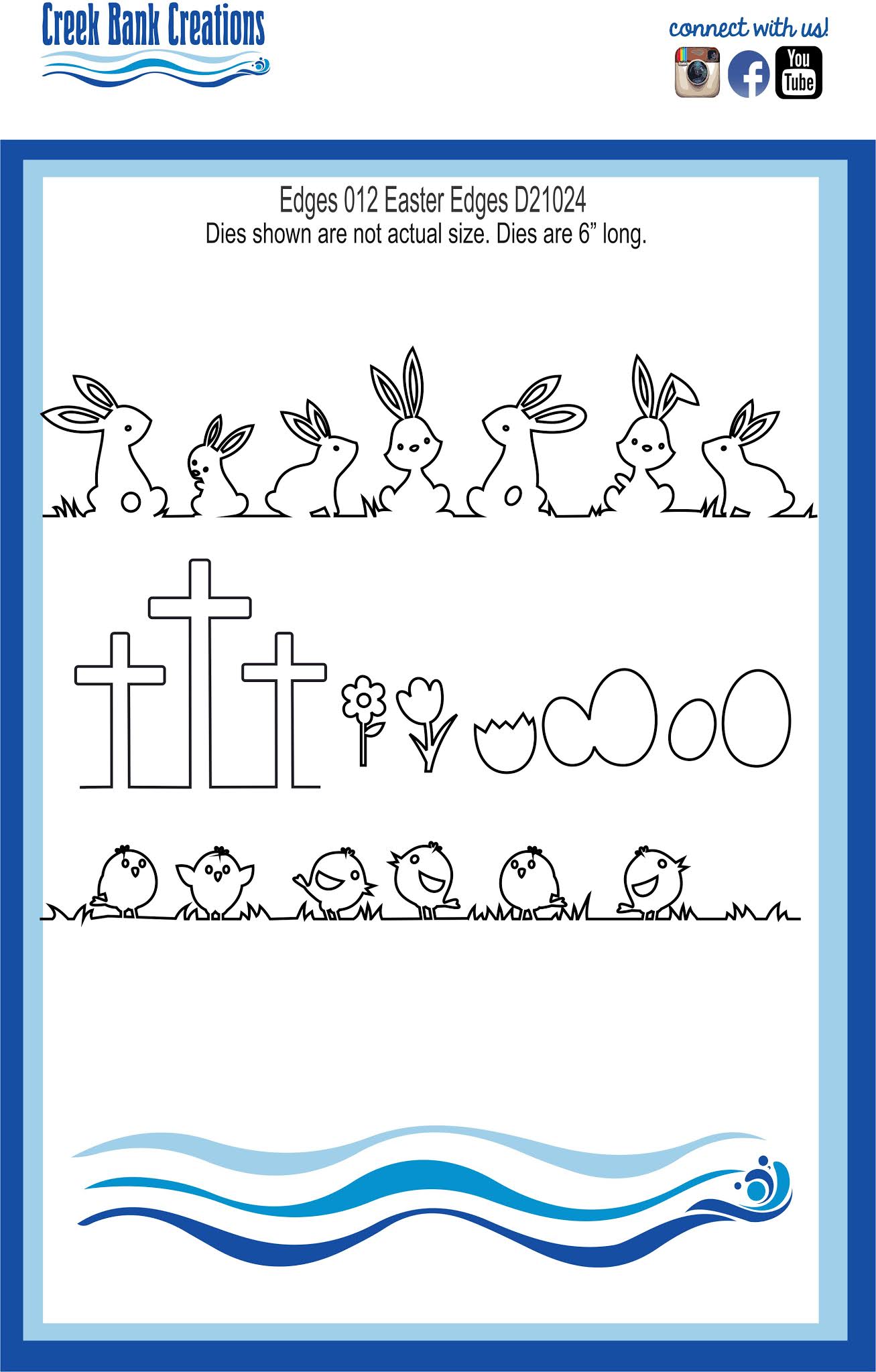 Creek Edges 012 Easter Edges. This die set contains edge dies are 5.75" long. These dies have been designed to work with our Free Standing Tunnel Card Die.