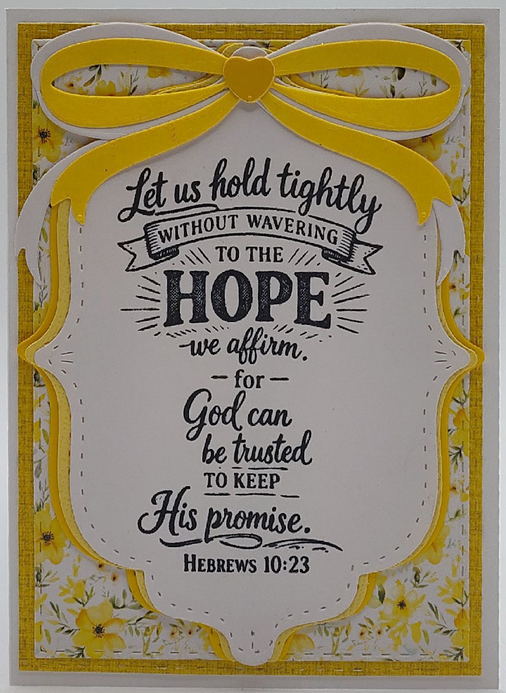 Creek Bank Creations Let us Hold tightly 3x4 Clear Mount Stamp. The stamp reads "Let us hold tightly without wavering to the HOPE we affirm, for God can, be trusted to keep his promise. Hebrews 10:23